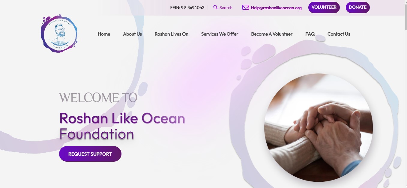 Roshan Like Ocean Foundation :US based Foundation Website designed and developed on Wordpress to provide essential services to those fighting with brain cancer, such as navigational help, Logistics and counseling..
