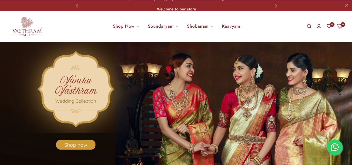 Vasthram Silks : A Dynamic shopify based ecommerce website developed to showcase traditional sarees online.